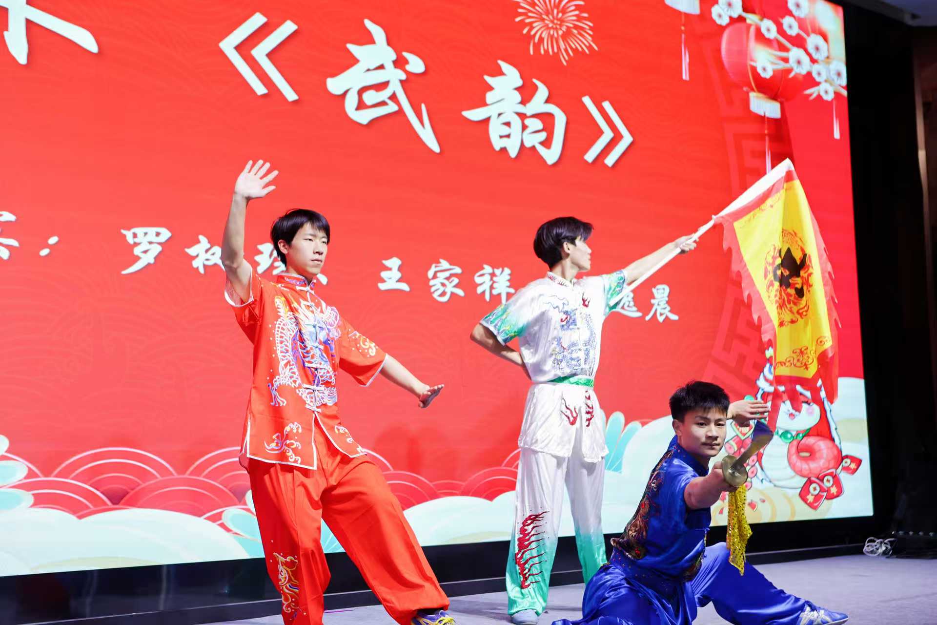 “傳承與創(chuàng)新” 篇章中,武術(shù)表演《武韻》剛健有力,表演者們動作行云流水,將中華武術(shù)的精氣神展現(xiàn)得淋漓盡致,傳遞著堅(jiān)韌不拔的傳承精神。朗誦《祖國的春天》深情激昂,訴說著新時代的花朵們對祖國的熱愛與對未來的憧憬。新 PI 代表帶來的歌曲《新 PI 陣線聯(lián)盟》充滿活力,趣味不斷,表演結(jié)束后,他們依次介紹自己,用各具特色的家鄉(xiāng)話為同學(xué)們送上新年祝福,鄉(xiāng)音傳遞著濃濃的關(guān)愛與期許,彰顯著科研新生力量的朝氣與擔(dān)當(dāng)。