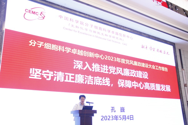 5月4日下午,中國(guó)科學(xué)院分子細(xì)胞科學(xué)卓越創(chuàng)新中心召開2023年度黨風(fēng)廉政建設(shè)大會(huì)。中心領(lǐng)導(dǎo)班子成員、黨委委員、紀(jì)委委員,研究組長(zhǎng)、職能部門負(fù)責(zé)人、技術(shù)平臺(tái)主任、黨支部書記及紀(jì)檢委員、“關(guān)鍵崗位”人員和研究生代表等近300人參加了會(huì)議。會(huì)議由中心黨委書記、副主任倪福弟主持。