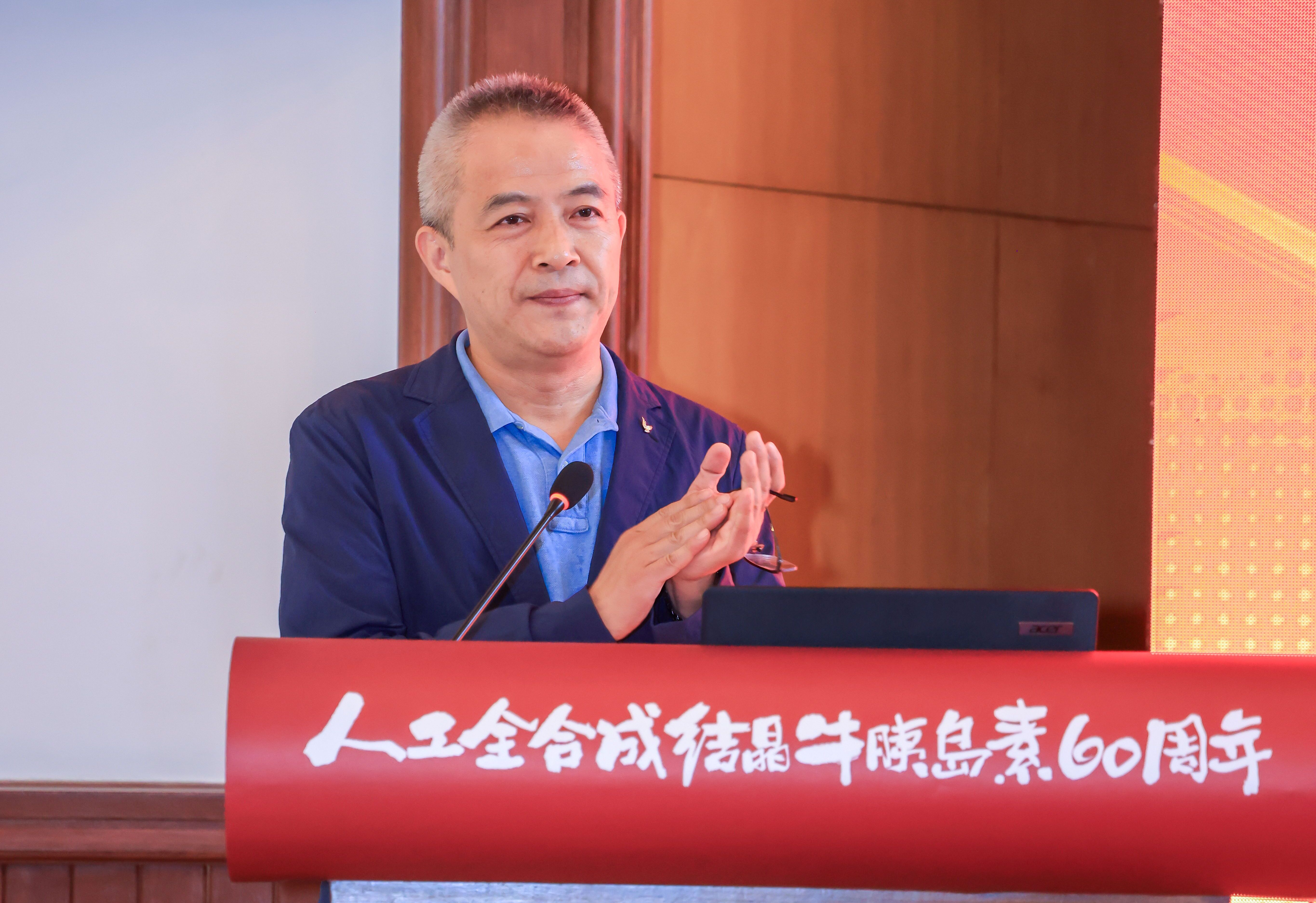 分子細(xì)胞卓越中心主任、黨委負(fù)責(zé)人劉小龍首先作題為《結(jié)晶映甲子、初心照未來——讓胰島素精神之光照亮新時(shí)代科技創(chuàng)新之路》的報(bào)告,重溫了六十年前老一輩科學(xué)家攜手攻堅(jiān)完成人工全合成結(jié)晶牛胰島素的艱辛歷程,詳細(xì)介紹了中心近年來持續(xù)開展胰島素相關(guān)科學(xué)研究,在基礎(chǔ)研究、科技成果轉(zhuǎn)化、學(xué)科交流與合作等方面取得的一系列新進(jìn)展。他表示,科技創(chuàng)新之路任重道遠(yuǎn),胰島素精神的火種六十年間在“320大院”薪火相傳,期待未來與兄弟單位有更多更緊密的合作,在原始創(chuàng)新與關(guān)鍵核心技術(shù)領(lǐng)域?qū)崿F(xiàn)更多“從0到1”的突破。